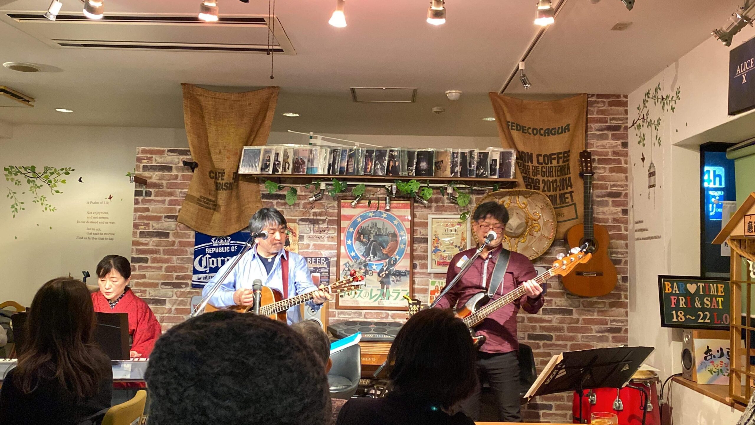 妻が飲食店の物件を探していた時、私がアリスが好きな者同士で音楽(キター演奏)を20数年ぶりに再開したことが重なり、妻からの提案でライブができる物件を探すことになったことがスタートでした。