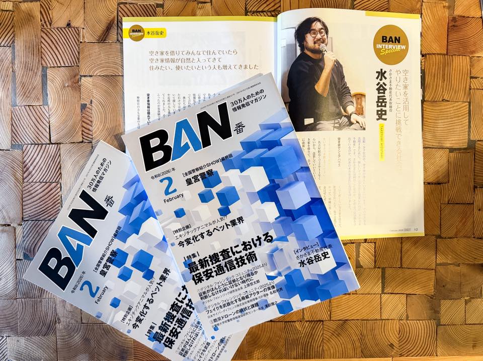 日本全国の警察官(約30万人)向け情報教養誌「BAN」にて、さかさま不動産を6ページにわたり特集いただきました。