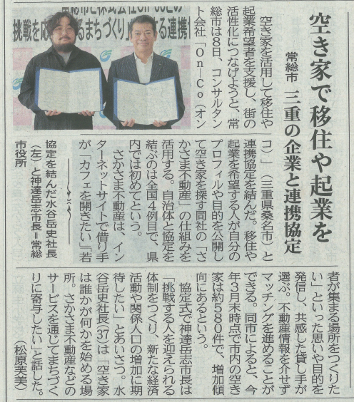 10月23日付茨城新聞にて、常総市との連携協定について掲載されました。