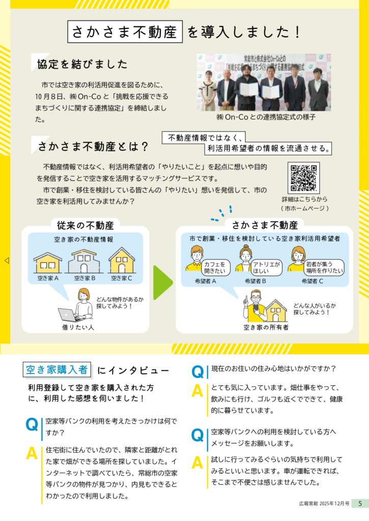 連携協定先の茨城県常総市さんの市広報誌に、「さかさま不動産」をご紹介いただきました。