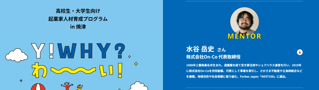 焼津市主催・高大生向け 起業家人材育成プログラム「Y!Why?わーい!」にメンターとして参画します