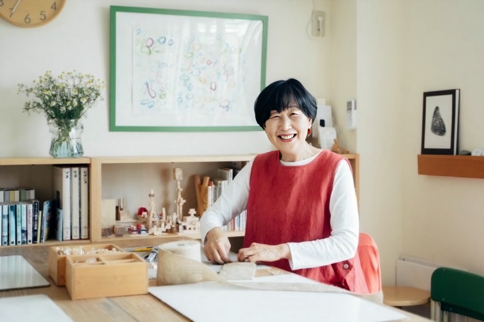 その後幼稚園の絵画造形講師と自分でアトリエも開き活動している中で、子どもが表現する内容は心のうちを表している事が多いと気付き、子ども色彩心理の学校に通い勉強を始めました。