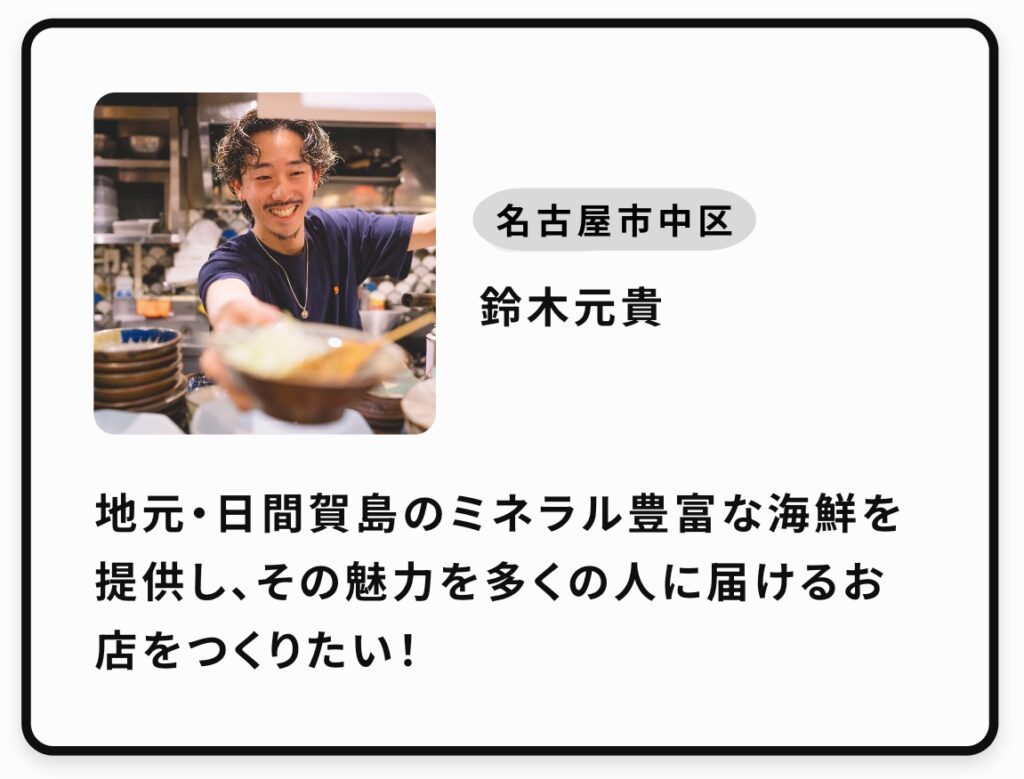 地元・日間賀島のミネラル豊富な海鮮を提供し、その魅力を多くの人に届けるお店をつくりたい!